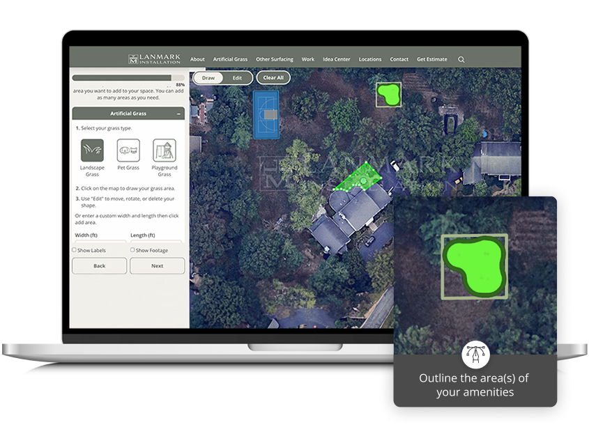Visit our online price estimator tool, take the short quiz and the aerial mapping technology to outline the area(s) that you want to replace with artificial grass, a putting green or game court.